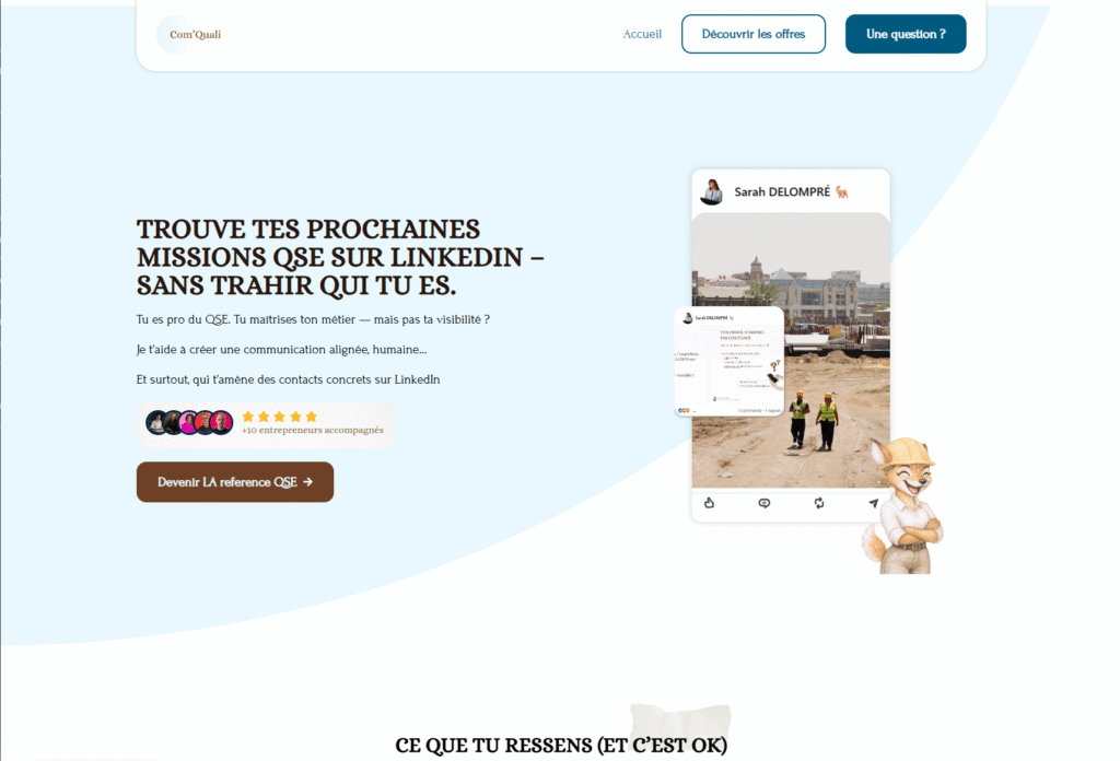 Dans le cadre de mon activité de consultante, j'avais besoin d'un site web qui mette en avant ma proposition et mon expertise sans cacher ma personnalité. Anna a parfaitement intégré tous ces éléments et plus encore car elle a mené des recherches personnelles sur mon domaine d'activité etc. Anna a réalisé un travail de qualité dépassant toutes mes attentes !