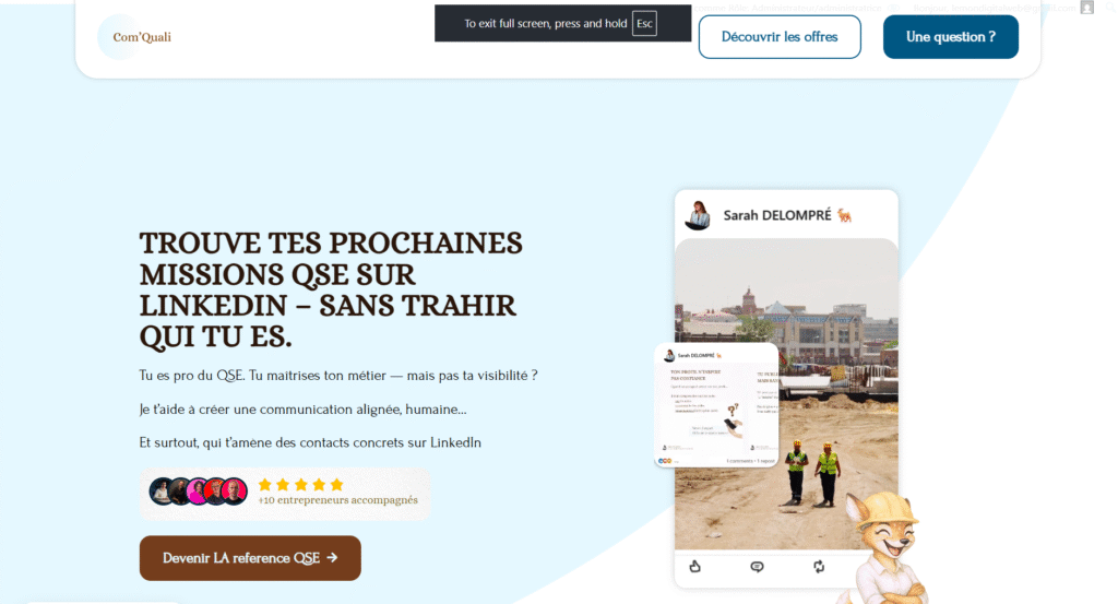 J’ai eu le plaisir de concevoir le site internet de Com’Quali, Une entreprise qui accompagne les pros du QSE à